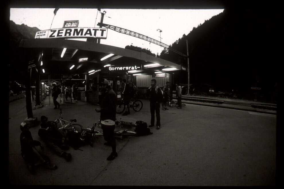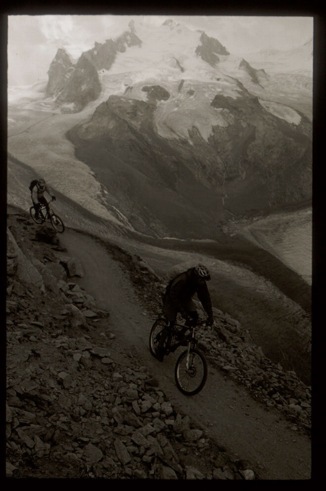 a picture perfect ski village in the German-speaking Upper Valais, we cruise like a pack of wolves through streets lined with geraniums and Rolex shops and fur coats. We’ve got these five and five suspension bikes with overly stuffed daypacks and we’re not wearing spandex and we haven’t shaved in days. People stare a lot. In the train station, littered with glitz and leather and wealth, we stand out like sore thumbs. We look like rogues that are up to something. We’re not cross-country riders, they’ve seen those before. We’re not boisterous British climbers, they’ve seen those too. We pile our bikes into gondolas and funiclaires, speak bad French and laugh overtly. We’re here to take their treasures without them even knowing what their treasure is.
