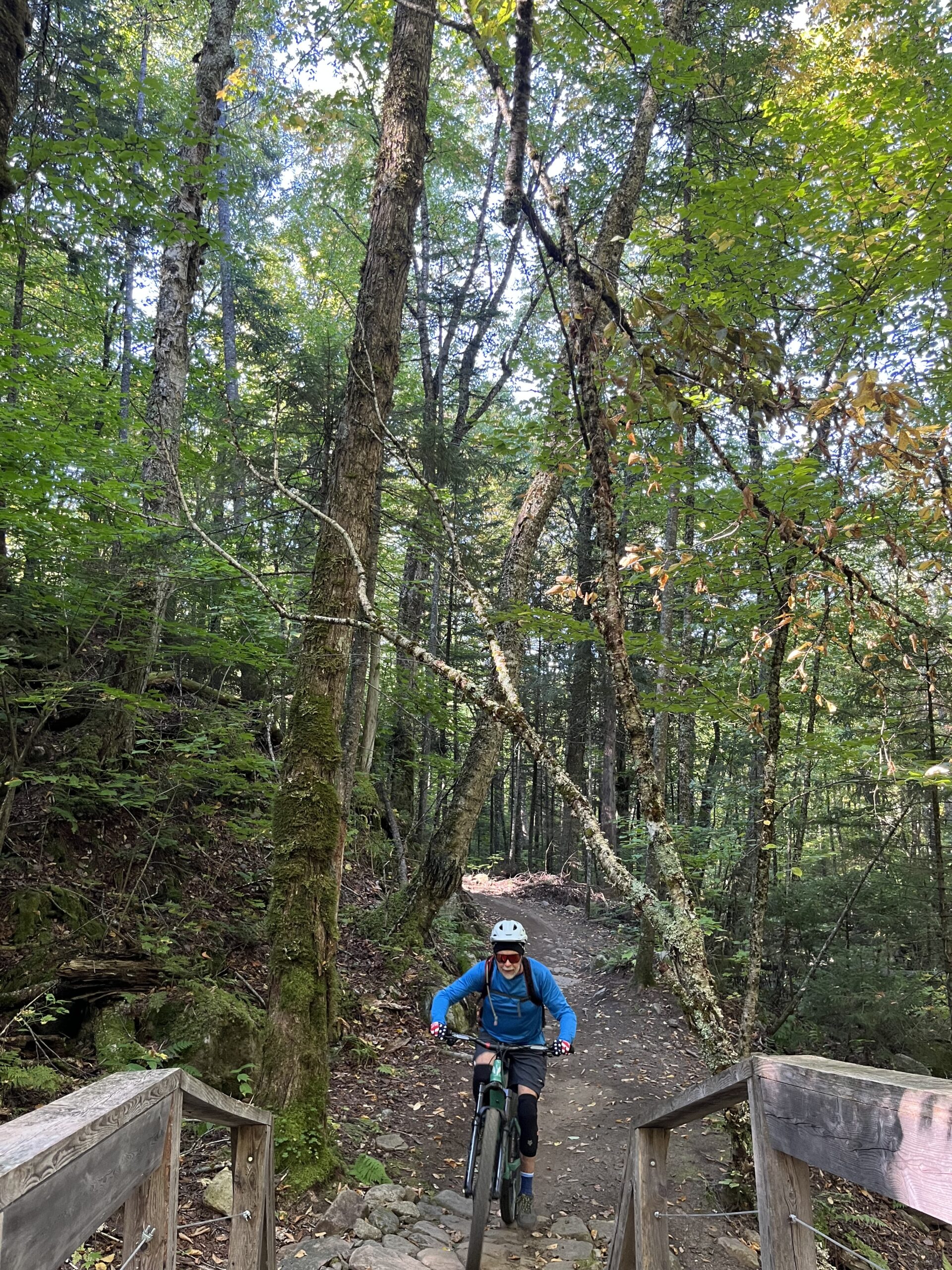 Québec is an incredible place to ride. Every day we explored a new trail network, and each one had its own personality. As an intermediate rider, I found the trails challenging in the best way — technical enough to demand focus, flowy enough to keep me grinning.