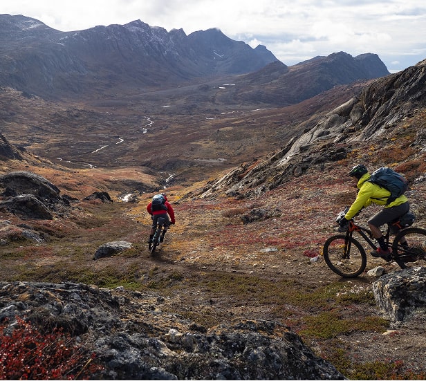 Are you a fit rider who can handle long days in the saddle over vast and varying terrain? Does riding in the remote wilderness and being completely self-sufficient excite you? This trip to Greenland is Type 2 Fun in the best way possible. The minimum technical ability required is Advanced+. This trip is suitable if you have been riding consistently for a decade or more, can handle walking and pushing your bike up sections that are reminiscent of trials-style trails, and can navigate obstacles and truly technical terrain. You have a very high level of overall fitness, typically ride four or more times a week in all weather and can ride all day long in challenging conditions, but you know when to walk a section that might be too difficult. This trip is a gruelling test of grit and endurance. You’ll be pushed to your limits, but emerge strong and satisfied, knowing you have conquered an epic adventure.