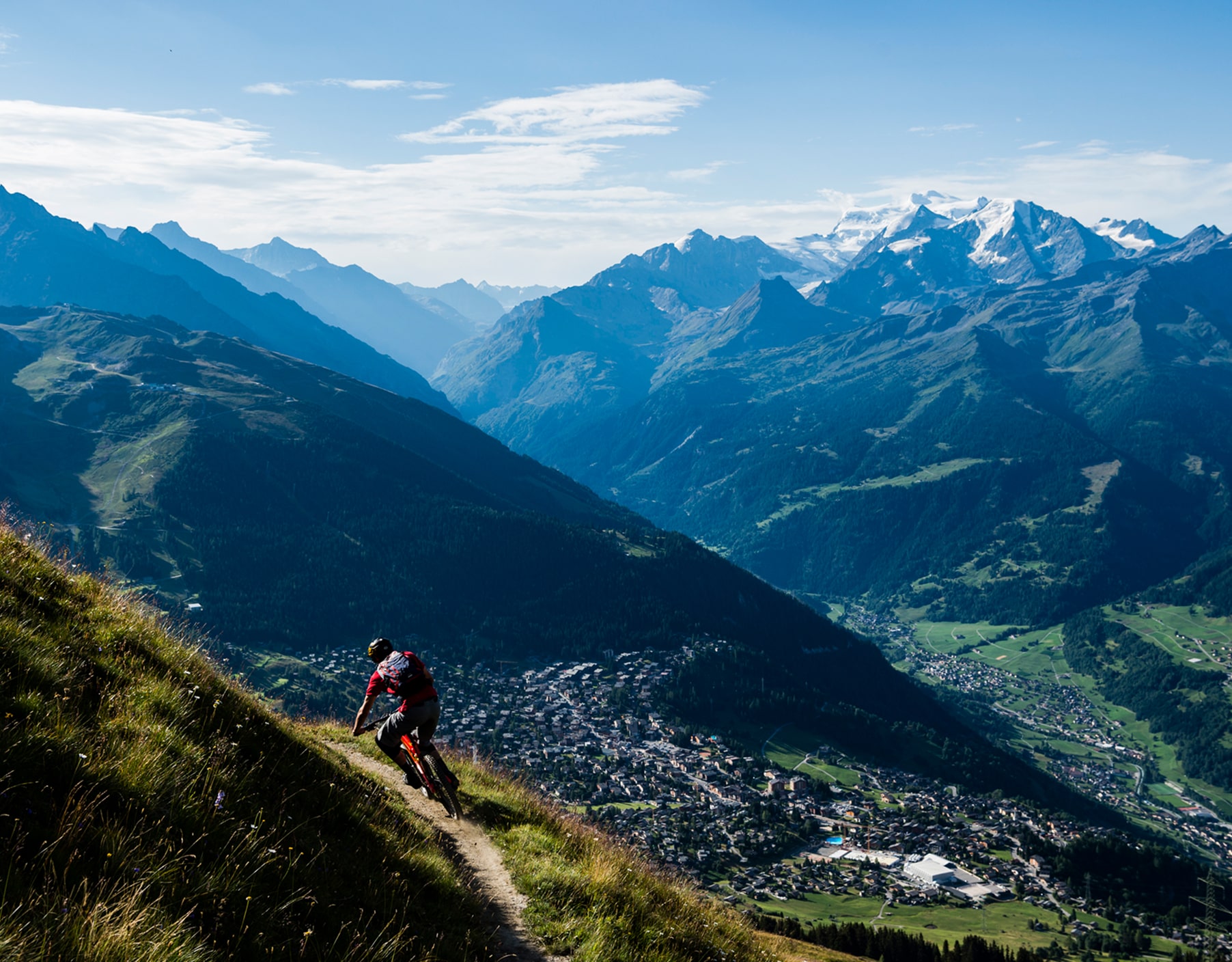 This trip is a must-do for passionate riders seeking the ultimate European mountain adventure. Imagine dropping into a descent high in the Alps after sipping a quick cappuccino at a mountain hut. Picture yourself gazing at Mont Blanc from above Verbier, spending the night in a historic alpine hotel and riding beneath the shadow of the Matterhorn in Zermatt. With pedal power, we traverse mountain passes, heading deep into the Swiss Alps, where ancient hiking trails double as world-class singletrack. Expect technical terrain with rocky sections, root-laced descents, and some exposure. Some sections will test your skills, while others will have you flowing effortlessly through alpine meadows and forested valleys. Be prepared for hike-a-bike stretches—comfortable riding shoes are essential. We maximize our time on the best descents by using a mix of lifts, trains, and shuttles, ensuring long, sustained downhills. The altitude ranges from 2,000m to 3,000m, so expect breathtaking views and lung-burning climbs. This trip is all about epic trails, stunning landscapes, and an unforgettable Swiss riding experience.