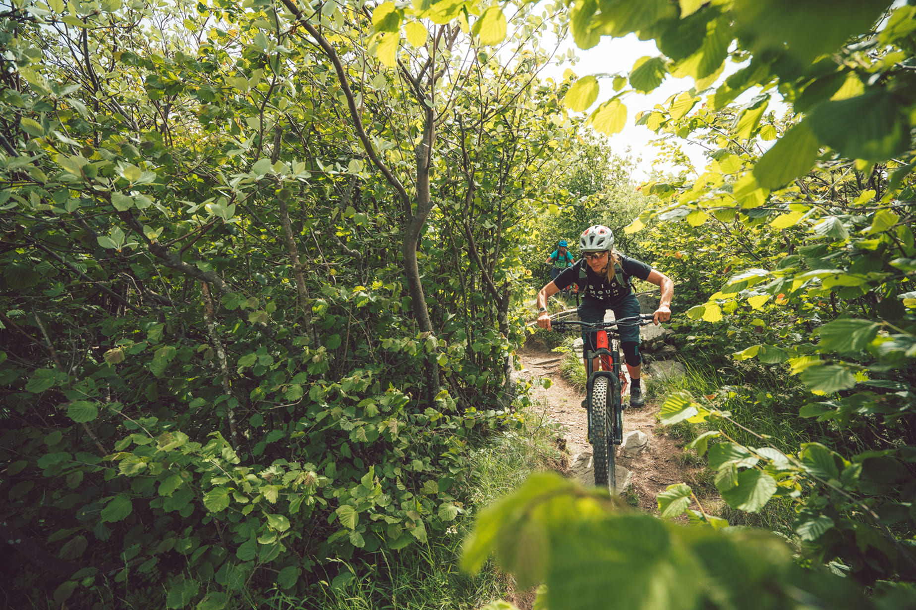 Short stem and riser bars are recommended. Please ensure your bike is in top working condition and freshly tuned. Never arrive with new parts or a bike that hasn’t been ridden. Eye protection and knee pads that you can comfortably pedal in are highly recommended. Helmets are mandatory when on your bike. A 16L backpack is recommended.