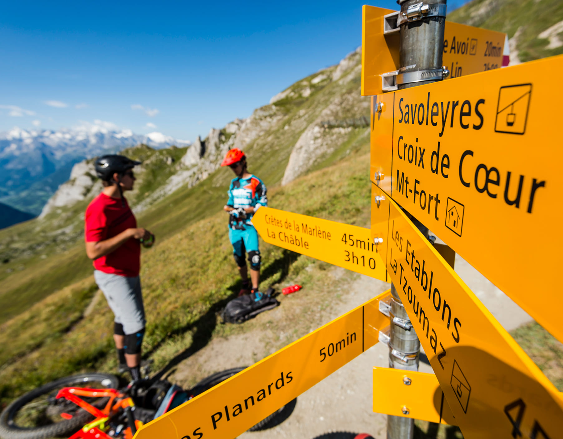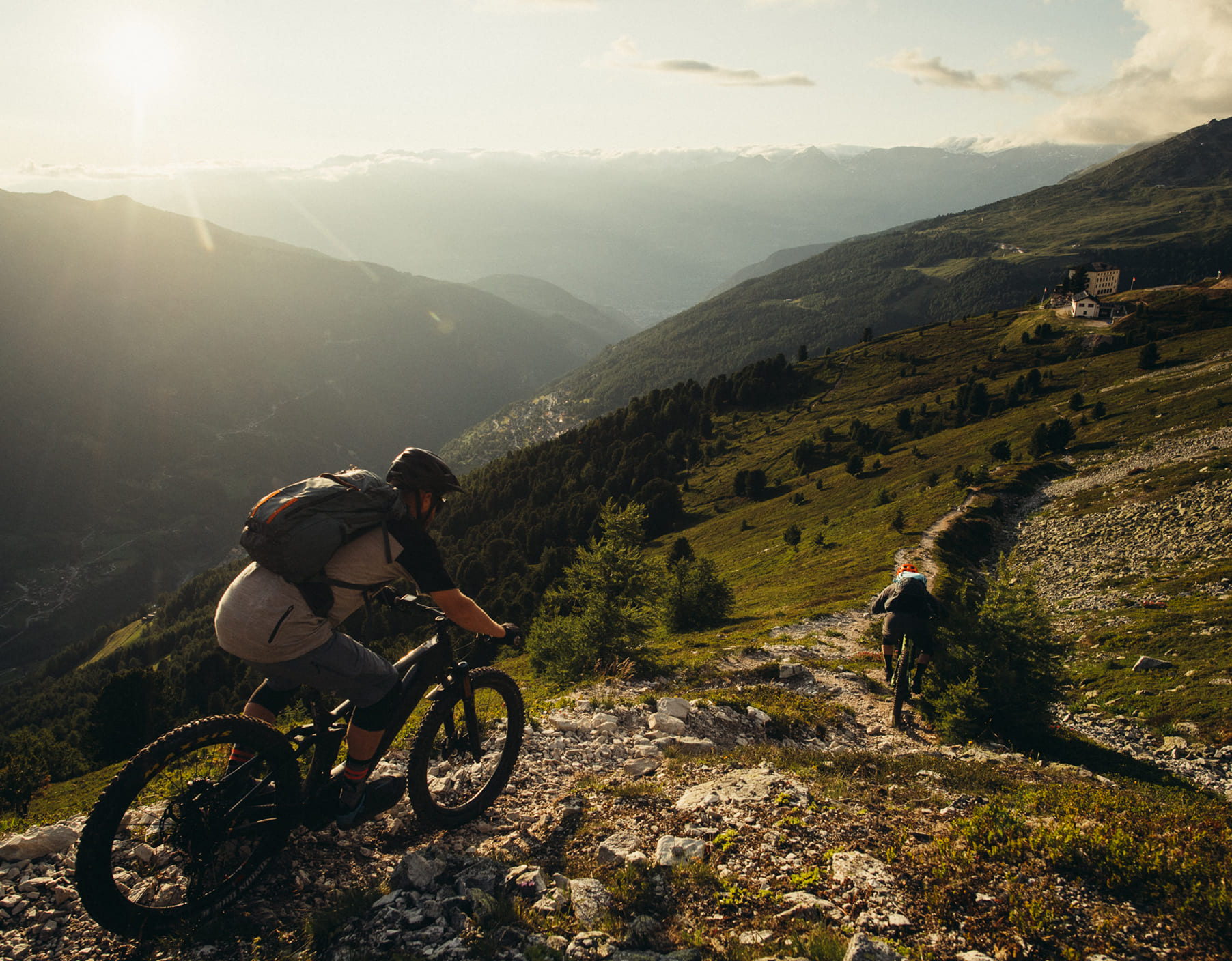 Rides are mostly over 2,000m and sometimes start as high as 3,000m. The singletrack trails are old hiking paths and are linked by sections of gravel roads, doubletrack and accessed by lifts, shuttle and climbing. Trail surfaces feature fixed rocks and rock gardens, with some dirt at lower elevations, switchbacks and steep sections. Expect some exposure at times, hike-a-bike sections and mostly open alpine riding with some forested sections in lower valleys.