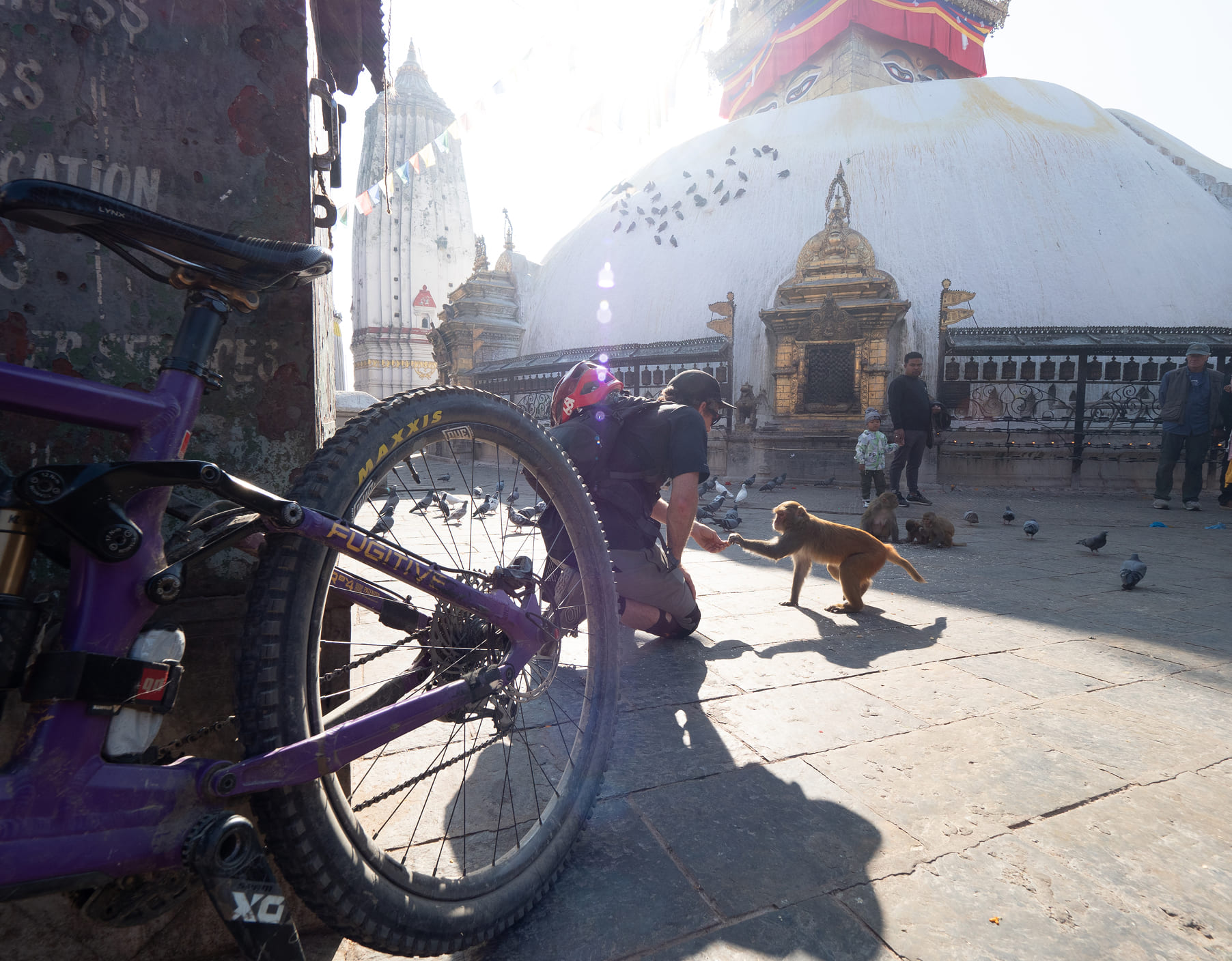 Do you want a truly bucket-list riding experience in an area famous for big mountains? Do you have the stamina to withstand long, consecutive days of riding, with daily hike-a bike sections? Are you interested in exploring a culture rich in religious traditions and history, art and architecture? This mountain bike trip to Nepal is perfect for experienced and very fit riders looking for a challenging and rewarding adventure. The minimum technical ability required for Nepal is Intermediate+. The terrain varies from technical sections with loose rock, sandy stretches, and narrow singletrack to more flowing, all-mountain-style trails across rolling landscapes. Expect daily rides of 4 to 6 hours of active pedalling, often in hilly terrain, with hike-a-bike sections and challenging weather conditions. This trip takes you through lower-altitude trails in the Kathmandu Valley and up to high mountain passes, with the highest point at 4,577 meters. If you’re up for a physical challenge, diverse landscapes, stunning views, and cultural experiences, this trip is for you.