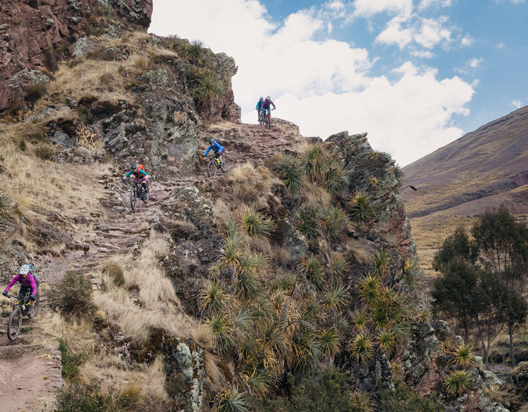 Mountain biking in Peru is a bucket-list adventure, combining challenging rides with rich cultural experiences, breathtaking historical sites, and exceptional hospitality. Your journey begins in Cusco, the former capital of the Inca Empire, where Spanish colonial architecture and the impressive Plaza de Armas set the stage for your adventure. From there, you’ll explore the El Valle Sagrado (The Sacred Valley) over six days of riding on ancient Inca-built singletrack. These trails wind through remote traditional weaving villages, towering mountains, and lesser-known Inca ruins, such as the Huchuy Qosqo temple and the Moray archaeological site, offering a unique glimpse into Peru’s storied past. The shuttle-assisted rides feature exciting descents interspersed with short but challenging climbs at altitude, technical sections, and fast-paced stretches that make Peru’s mountain biking world-renowned. To top it all off, we’ve included a once-in-a-lifetime visit to Machu Picchu, accessed by a scenic train and followed by a privately guided tour of this iconic site.